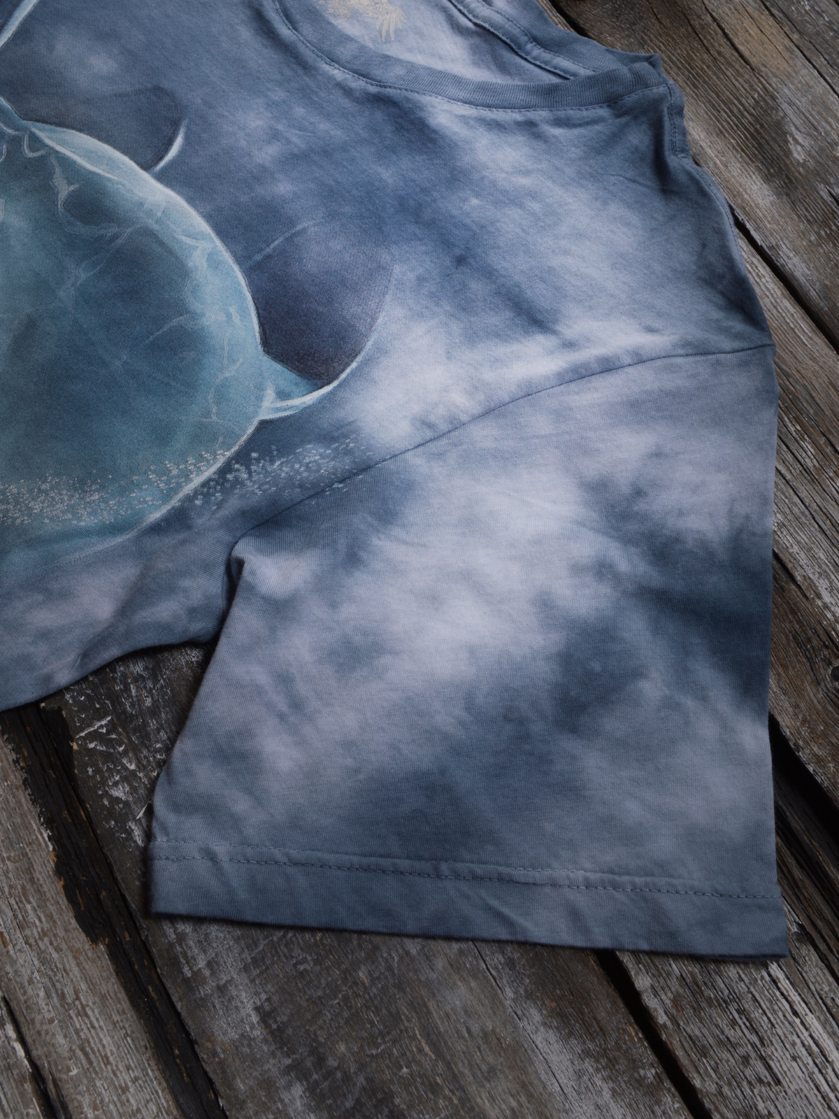 • Рисунок данной модели создан профессиональными художниками компании KRASAR. Цвета и оттенки подобраны таким образом, чтобы стильная футболка тайдай хорошо сочеталась с джинсовой одеждой. Объёмный 3D принт с передней стороны футболки является единым целым с тканью и не ощущается при прикосновении к нему. Отсутствует эффект наклейки. Благодаря передовой технологии печати рисунок не смоется и не потрескается даже после многочисленных стирок. Печать выполнена безопасными красками, что исключает аллергическую реакцию на коже.
