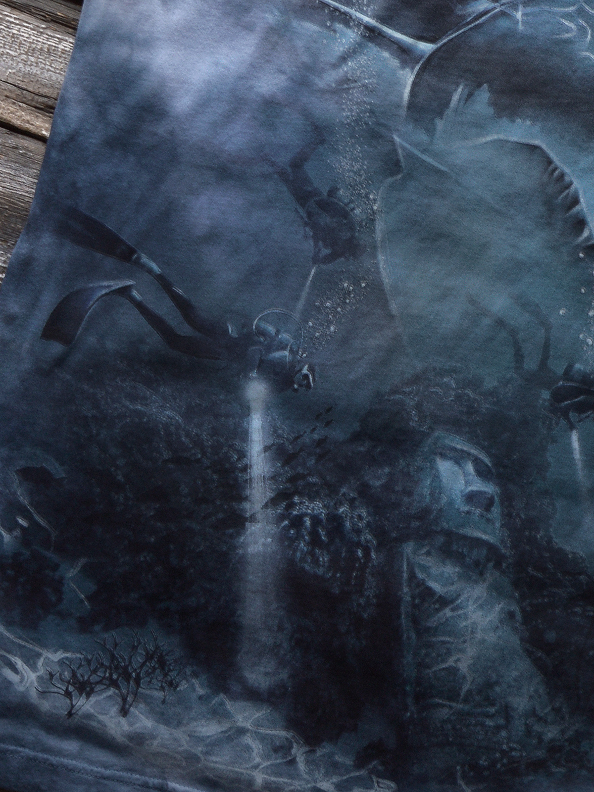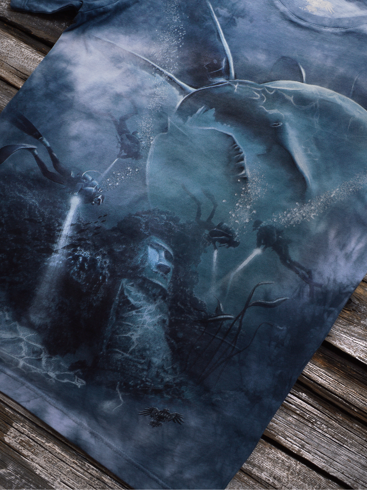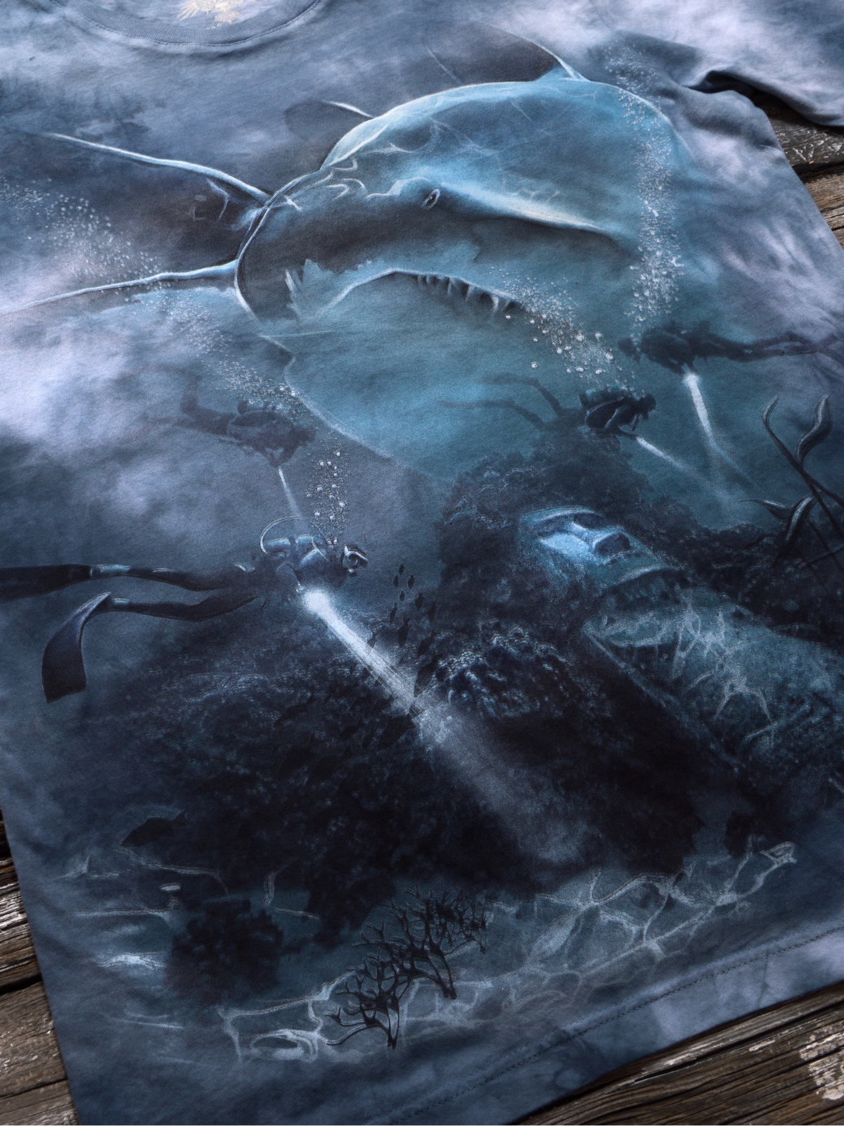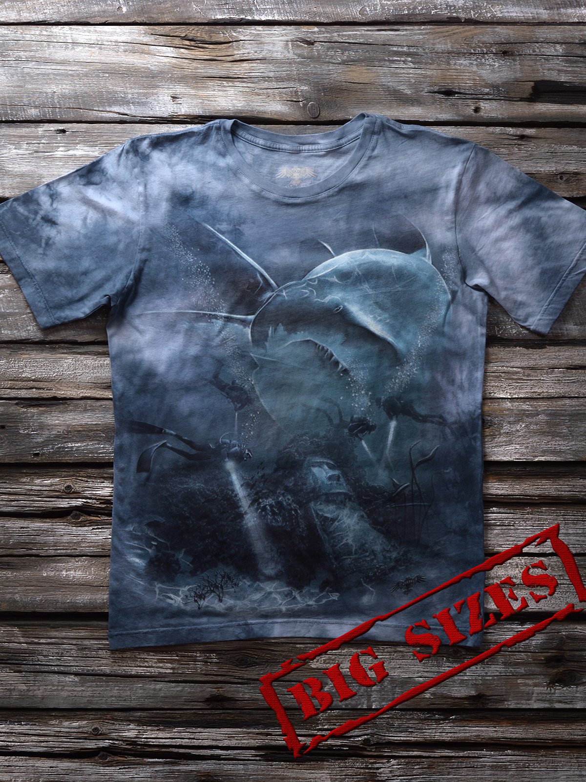 Футболка тай-дай 3D BIG SIZE АКУЛА АКВАЛАНГИСТЫ
