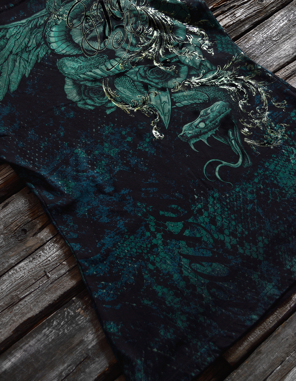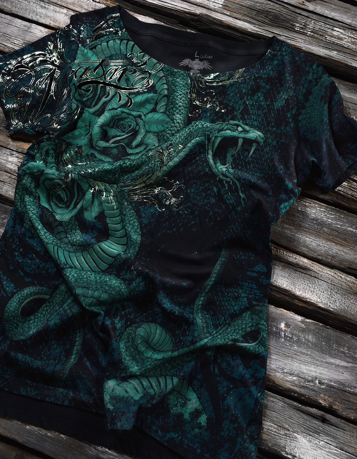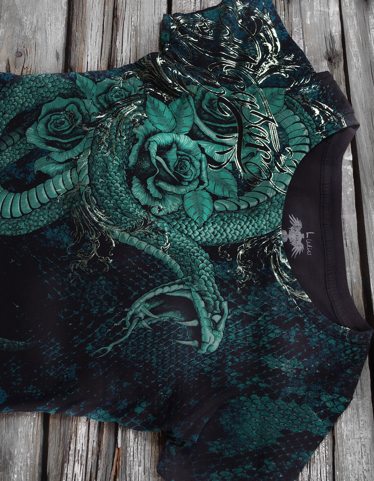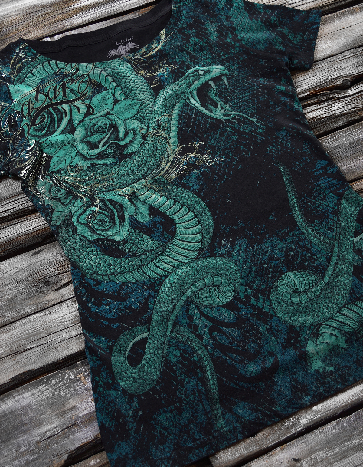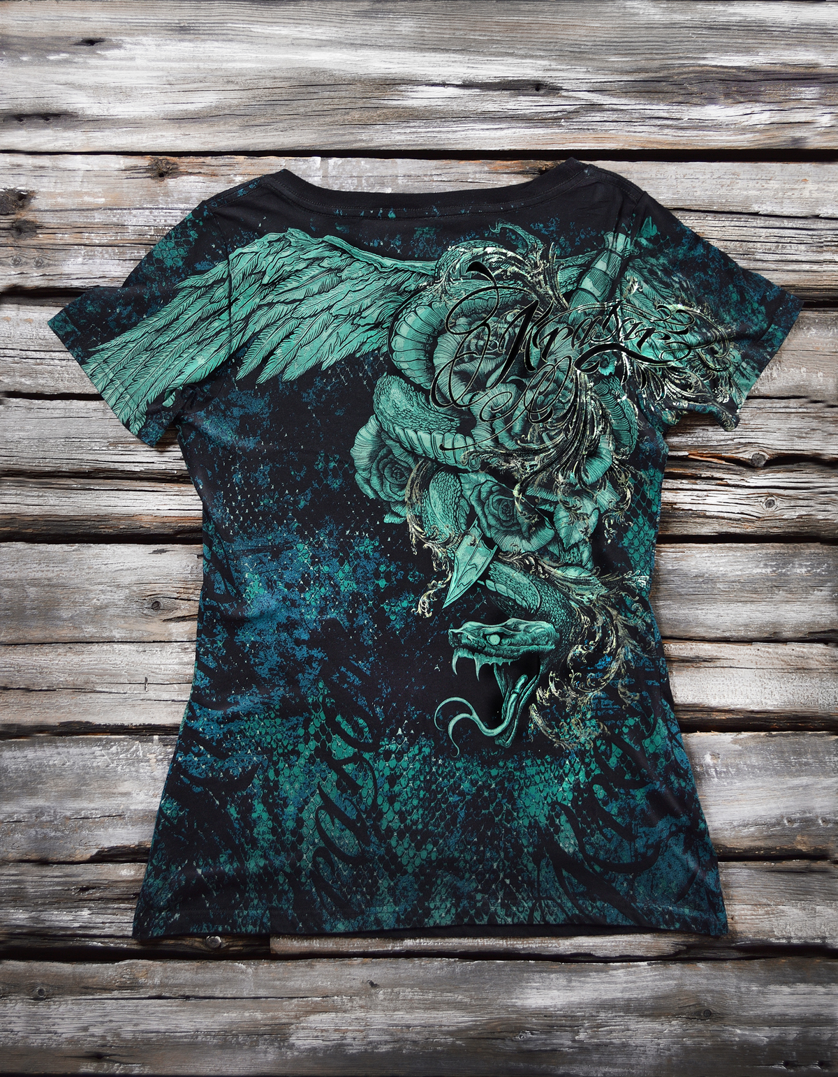 • Рисунок данной модели создан профессиональными художниками компании KRASAR. Цвета и оттенки подобраны таким образом, чтобы стильная футболка хорошо сочеталась с джинсовой одеждой. Принт нанесён с передней и задней стороны футболки и является единым целым с тканью и не ощущается при прикосновении к нему. Отсутствует эффект резиновой наклейки. Отдельные элементы рисунка выполнены декоративным фольгированием, что придаёт изделию более яркий и привлекательны вид. Благодаря передовой технологии печати рисунок не смоется и не потрескается даже после многочисленных стирок. Истиранию со временем подвержены только элементы из фольги, которые при соблюдении рекомендаций по стирке - продержатся долго. Печать выполнена безопасными красками, что исключает аллергическую реакцию на коже.