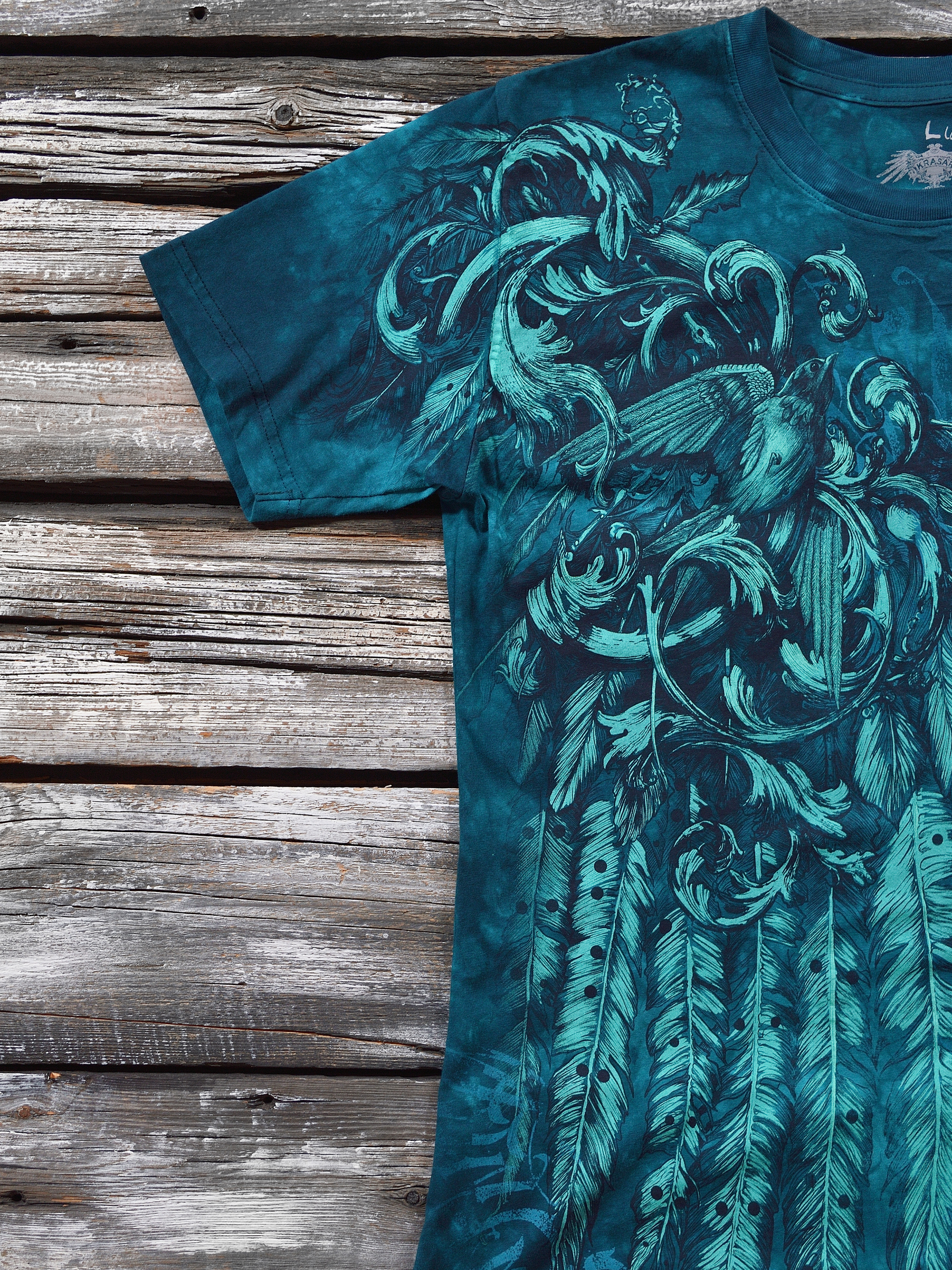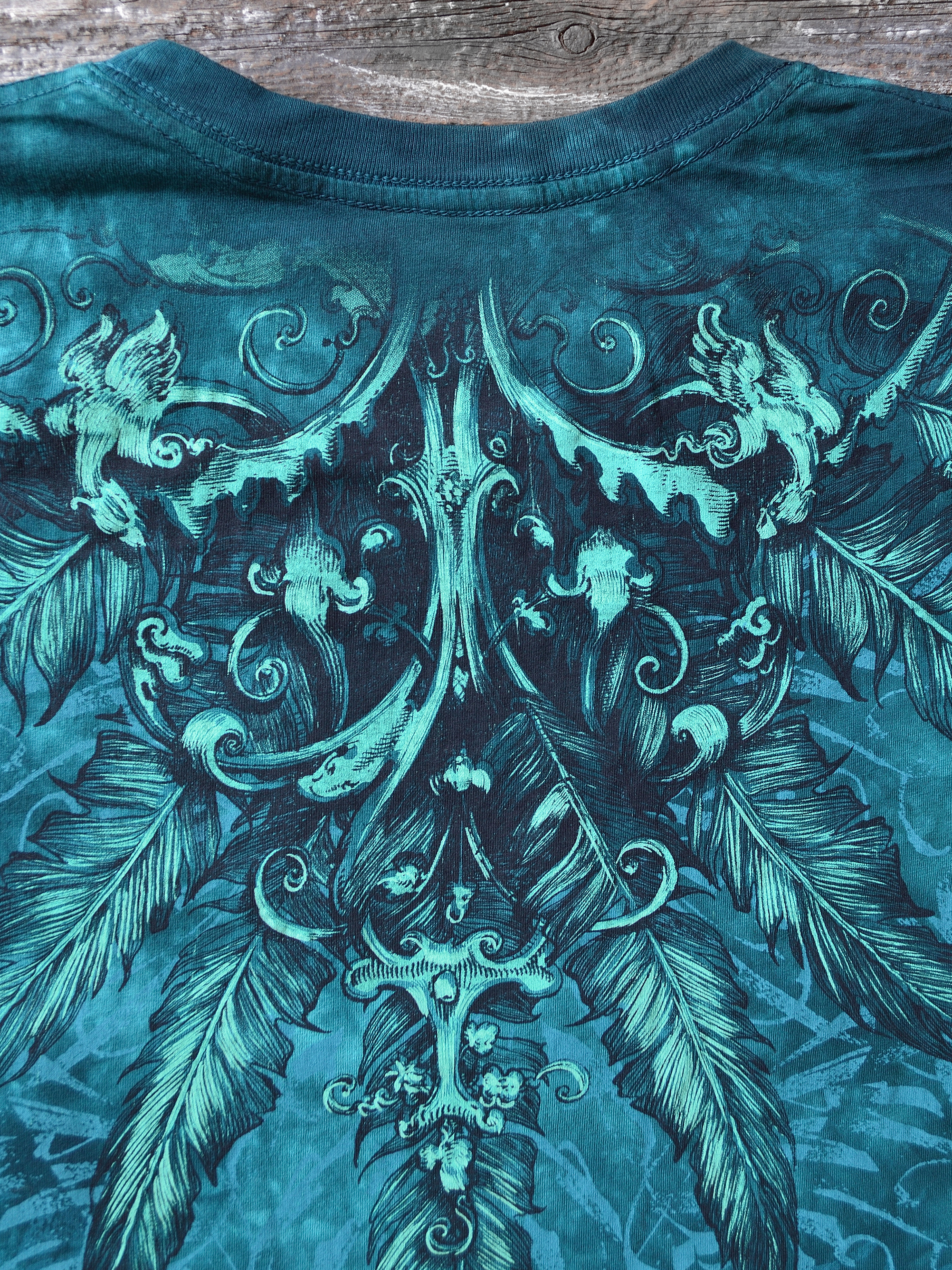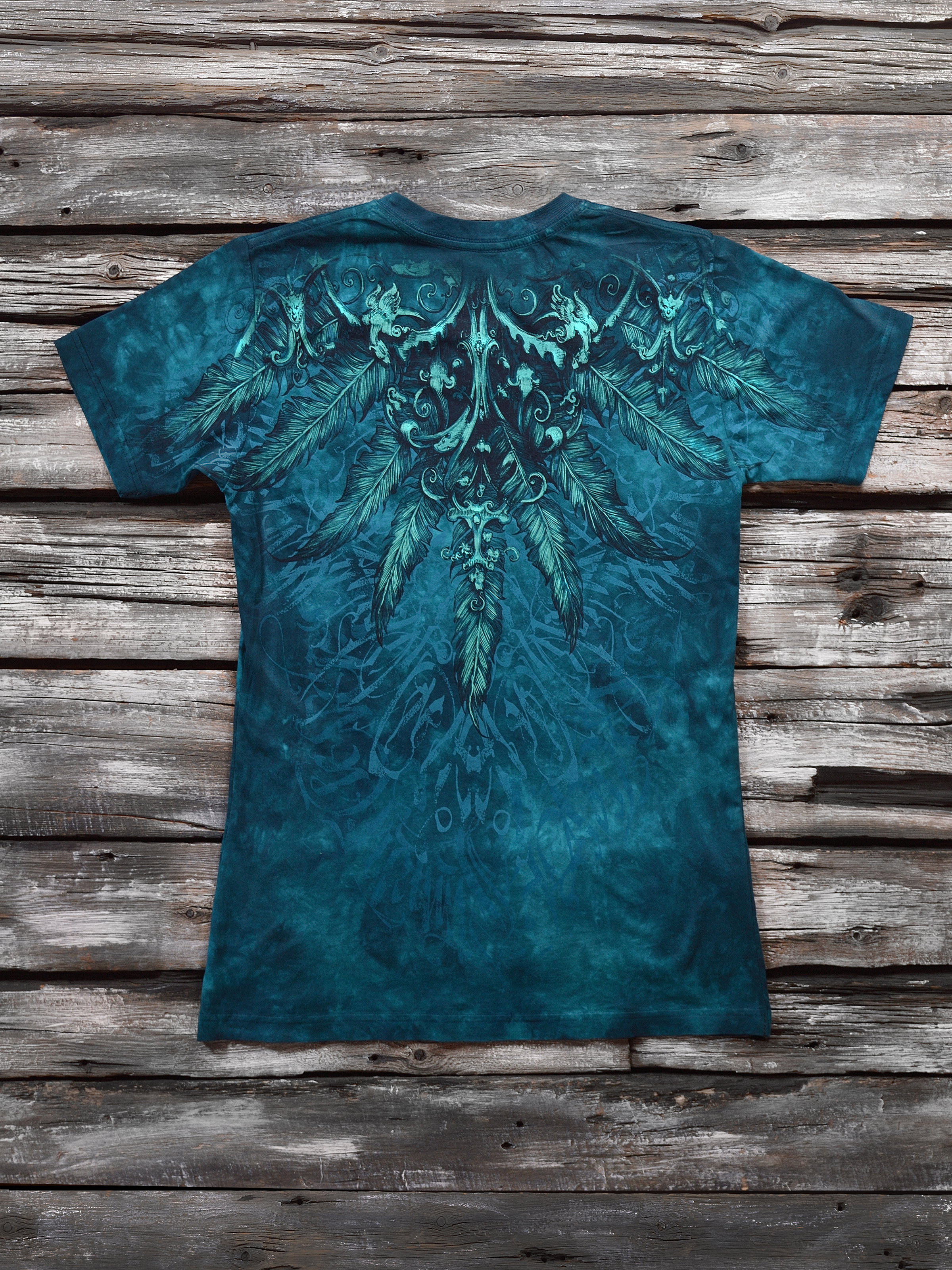 • Рисунок данной модели создан профессиональными художниками компании KRASAR. Цвета и оттенки подобраны таким образом, чтобы стильная футболка хорошо сочеталась с джинсовой одеждой. Принт нанесён с передней и задней стороны футболки и является единым целым с тканью и не ощущается при прикосновении к нему. Отсутствует эффект резиновой наклейки. Благодаря передовой технологии печати рисунок не смоется и не потрескается даже после многочисленных стирок. Печать выполнена безопасными красками, что исключает аллергическую реакцию на коже.