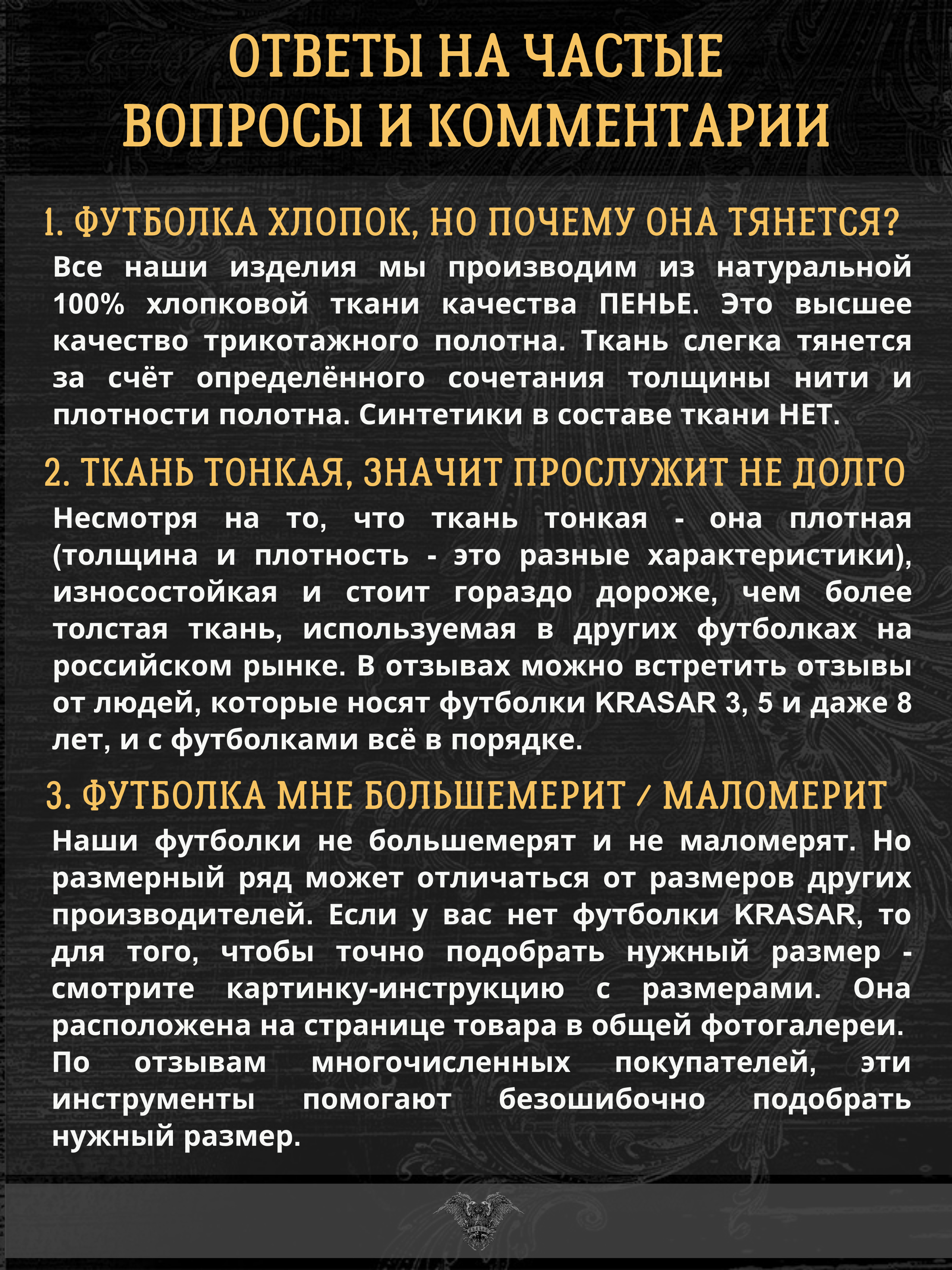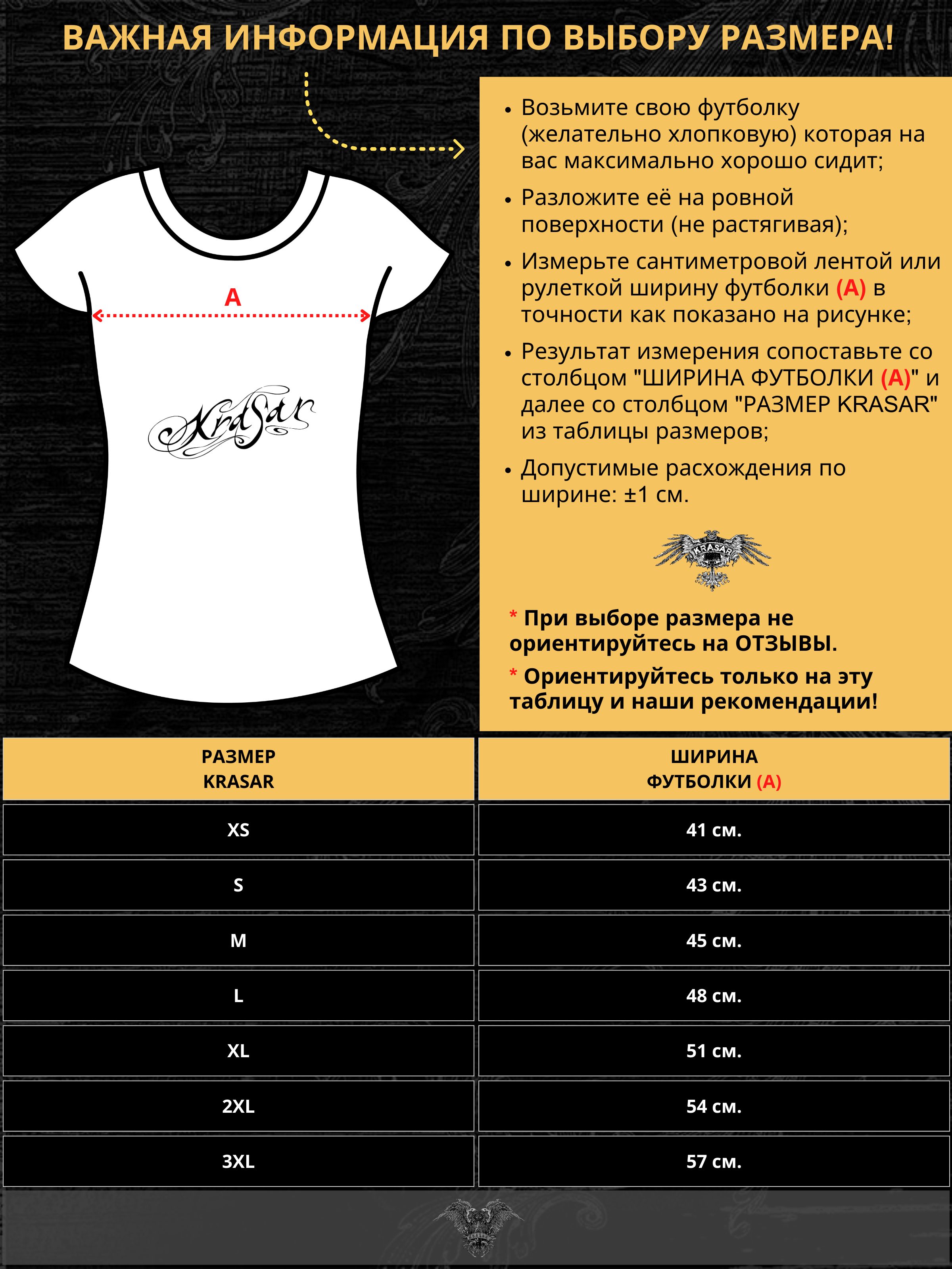 ❗️ ВАЖНАЯ ИНФОРМАЦИЯ ПО РАЗМЕРАМ: Чтобы правильно подобрать размер изделия KRASAR смотрите актуальную таблицу размеров в фотогалереи товара. Действуйте согласно инструкции по подбору размера с помощью измерения ширины своей футболки. Эта информация поможет вам безошибочно подобрать нужный размер. Если вы приобретали изделие KRASAR в прошлом - заказывайте такой же размер, как и ранее. Если делаете заказ впервые - ориентируйтесь исключительно на картинку с инструкцией и размерами, которая расположена в фотогалереи товара!