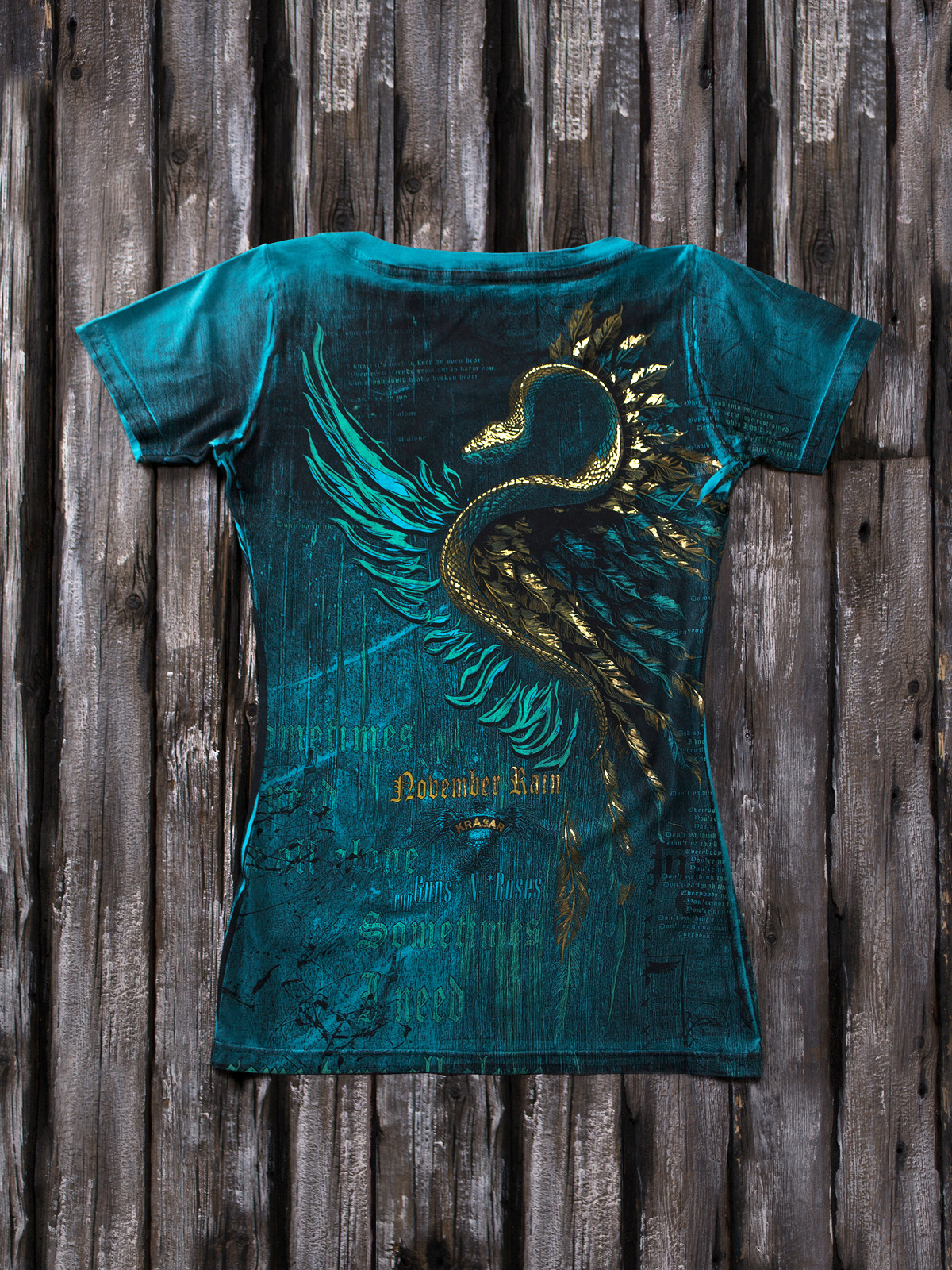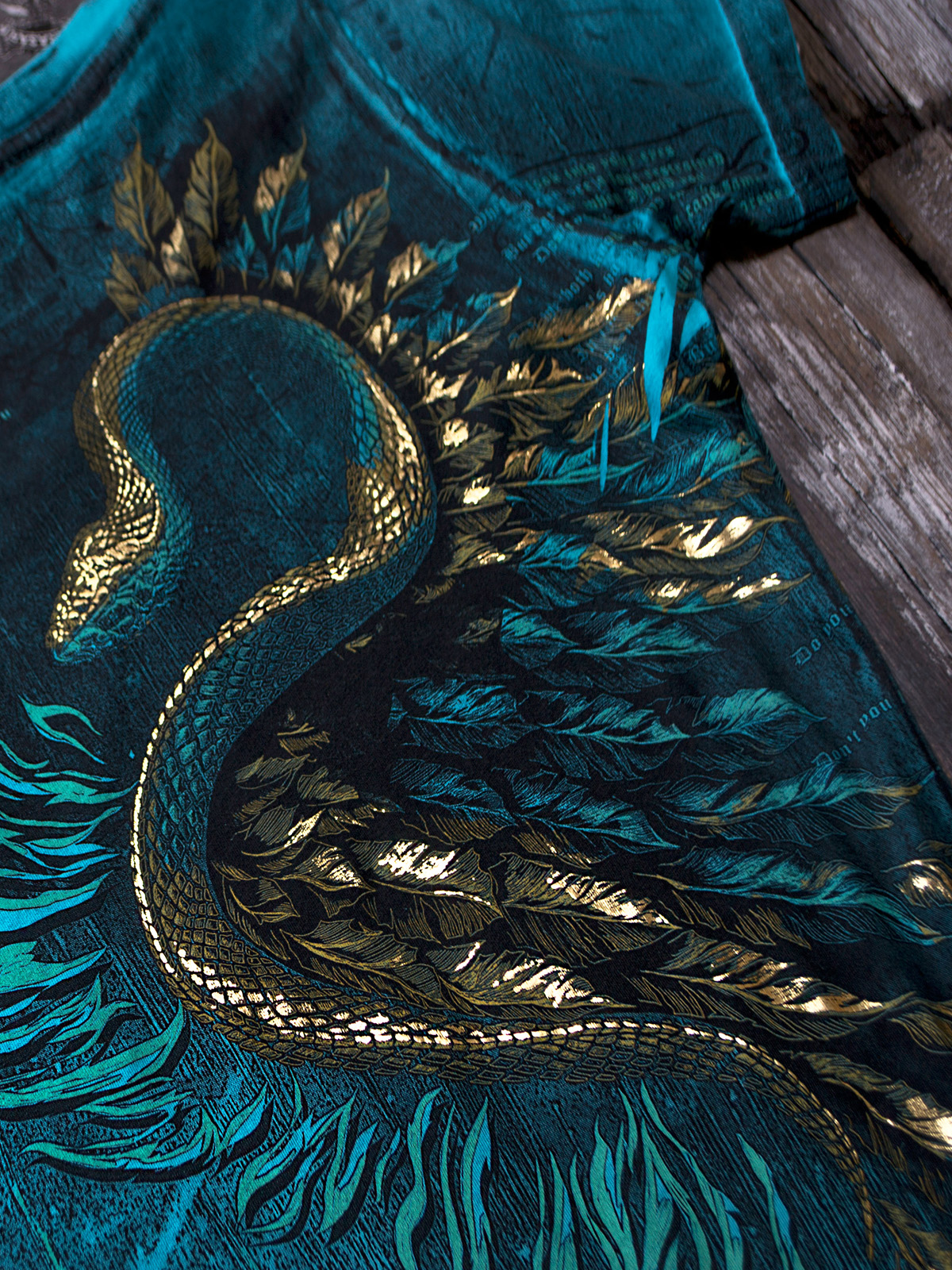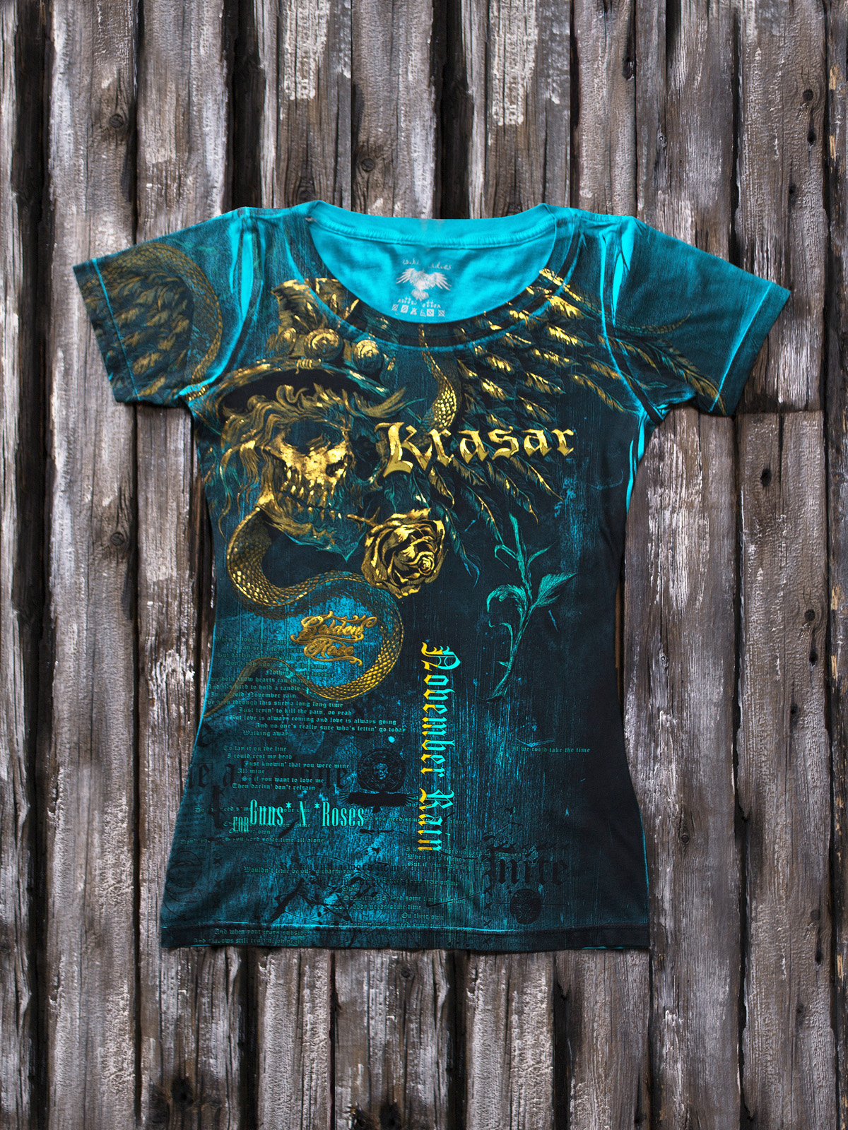• Рисунок данной модели создан профессиональными художниками компании KRASAR. Цвета и оттенки подобраны таким образом, чтобы стильная футболка хорошо сочеталась с джинсовой одеждой. Принт нанесён с передней и задней стороны футболки и является единым целым с тканью и не ощущается при прикосновении к нему. Отсутствует эффект резиновой наклейки. Отдельные элементы рисунка выполнены декоративным фольгированием, что придаёт изделию более яркий и привлекательны вид. Благодаря передовой технологии печати рисунок не смоется и не потрескается даже после многочисленных стирок. Истиранию со временем подвержены только элементы из фольги, которые при соблюдении рекомендаций по стирке - продержатся долго. Печать выполнена безопасными красками, что исключает аллергическую реакцию на коже.