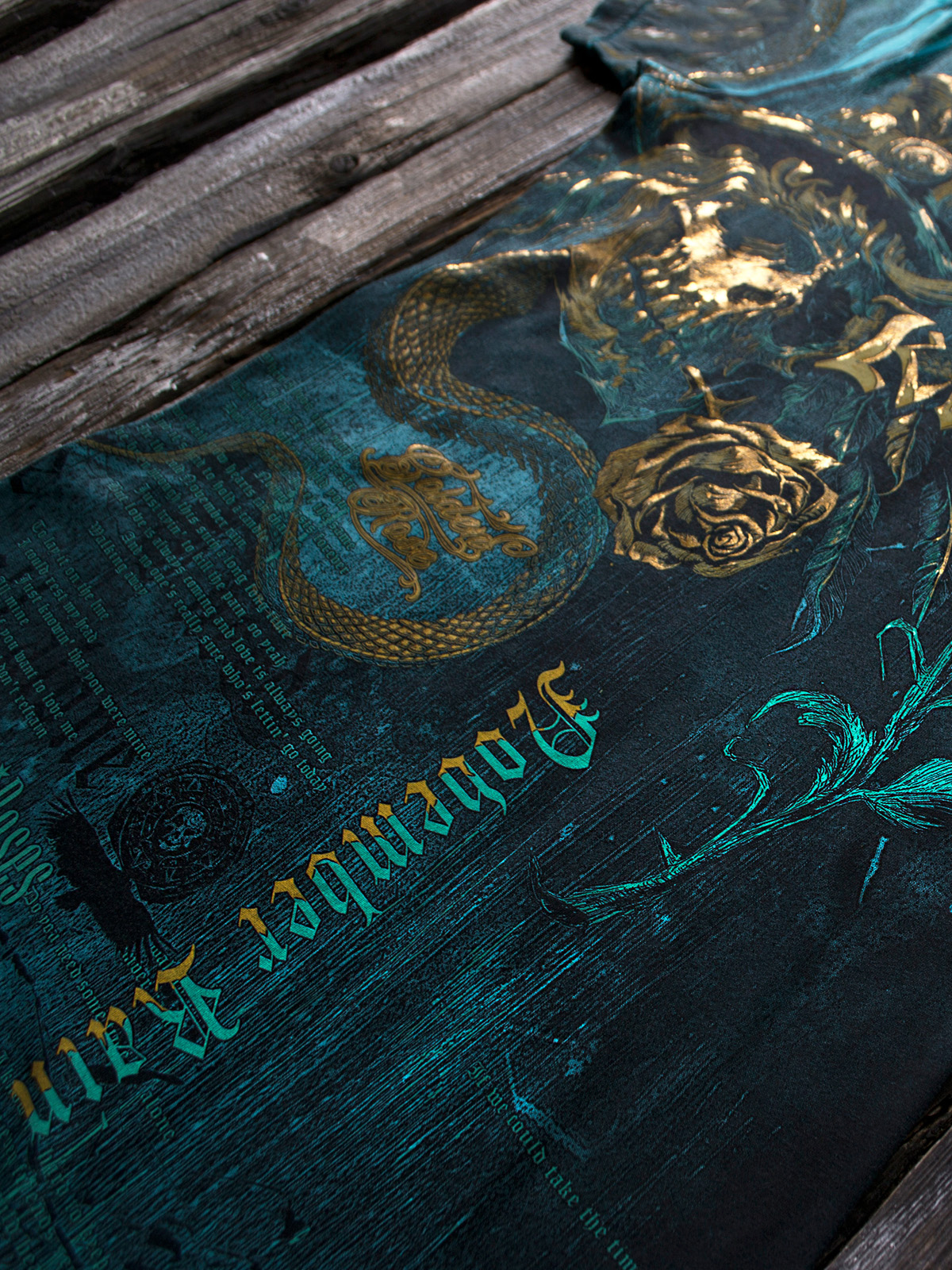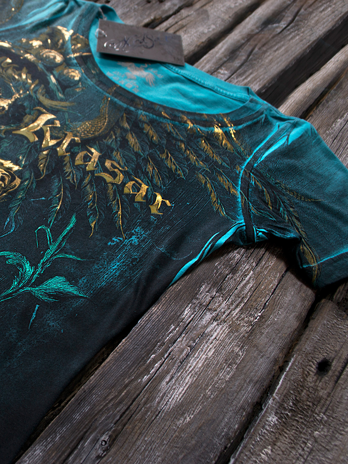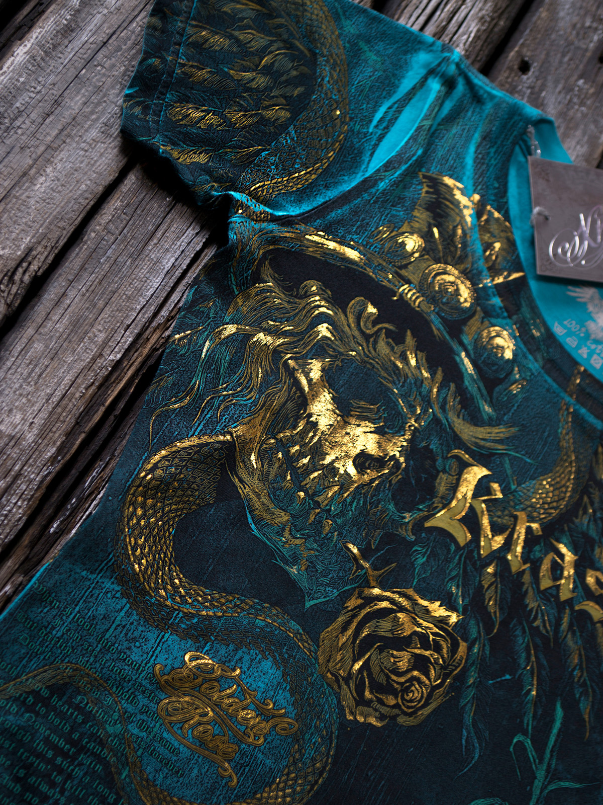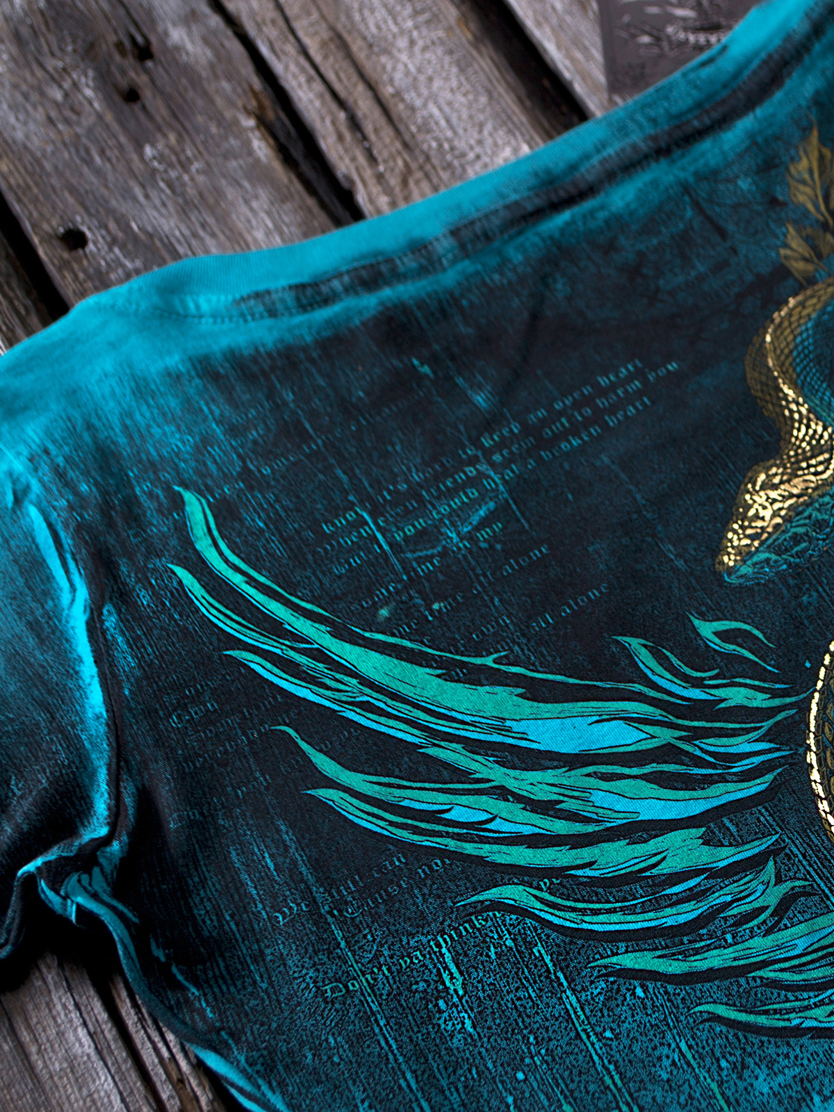 • Рисунок данной модели создан профессиональными художниками компании KRASAR. Цвета и оттенки подобраны таким образом, чтобы стильная футболка хорошо сочеталась с джинсовой одеждой. Принт нанесён с передней и задней стороны футболки и является единым целым с тканью и не ощущается при прикосновении к нему. Отсутствует эффект резиновой наклейки. Отдельные элементы рисунка выполнены декоративным фольгированием, что придаёт изделию более яркий и привлекательны вид. Благодаря передовой технологии печати рисунок не смоется и не потрескается даже после многочисленных стирок. Истиранию со временем подвержены только элементы из фольги, которые при соблюдении рекомендаций по стирке - продержатся долго. Печать выполнена безопасными красками, что исключает аллергическую реакцию на коже.